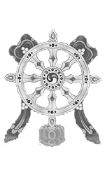 La Rueda de Dharma representa las palmas de las manos del Buddha. El Buddha enunció el Dharma para hacer girar la rueda de Dharma. La rueda tiene ocho radios que representan el camino óctuple - visión correcta, contemplación correcta, habla correcta, conducta correcta, forma de vida correcta, esfuerzo correcto, pensamiento correcto y concentración correcta. Los practicantes normalmente giran la Rueda de Dharma doce veces, para conmemorar el primer giro de la Rueda de Dharma dado por Buddha Sakyamuni, |